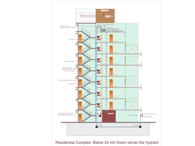 The water reservoirs to feed the fire hydrant system should be provided underground, at ground level or at the higher level. It is a horizontal pipeline with the outlet of 63 mm. dia. connected to the underground water tank. Courtyard hydrants to be provided with stand posts as specified in the schedule of quantities.