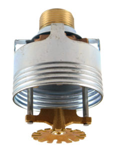 The most common type of fire sprinkler head is the pendent. Once water is expelled onto a pendent fire sprinkler’s deflector, it sprays in a circular pattern providing the most coverage of any fire sprinkler