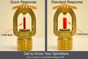 Quick Response Sprinklers are primarily used for light hazard applications, it discharges water higher up on the ceiling. Quick Response fire sprinkler heads are standard for highly populated buildings such as health care facilities, assisted living facilities, shopping malls.